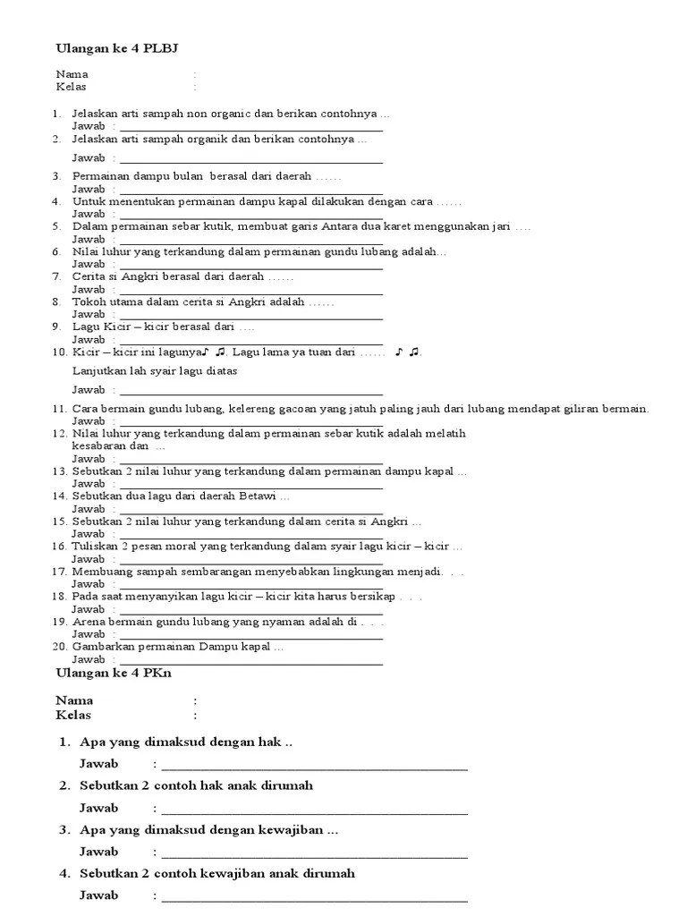 Soal Plbj Kelas 3 Bab 1 / Tari Kicir Kicir Kartun / Soalnya yang bener a dan c.